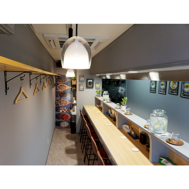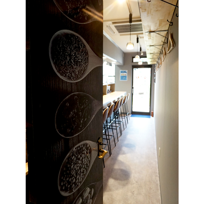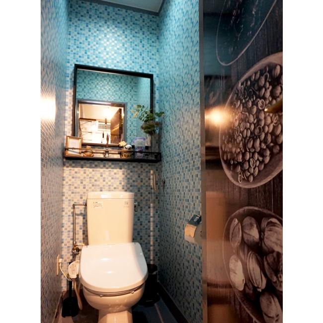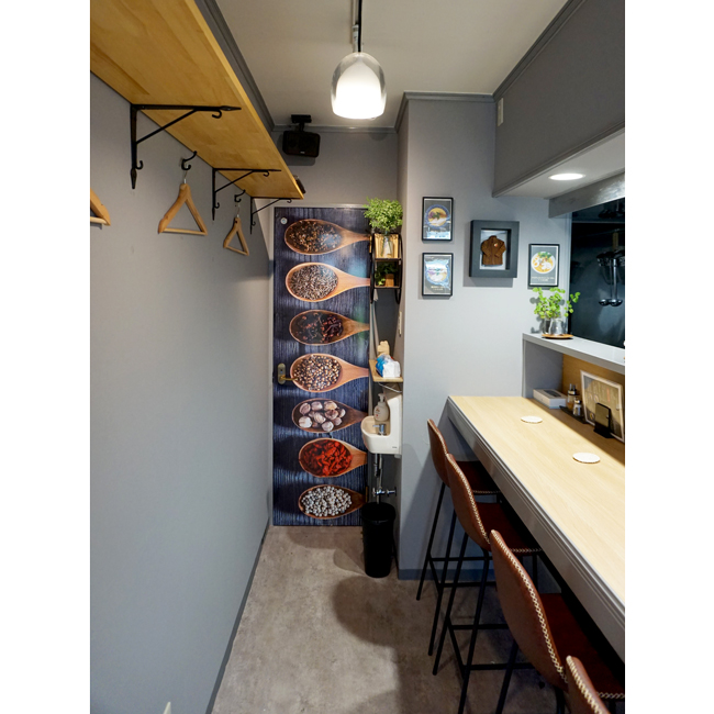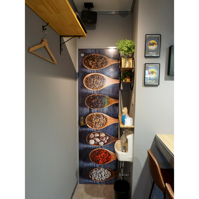 トイレの扉にはスパイスの写真を用いてアクセントを施し、東南アジアの魅力をより一層引き立てています。 |